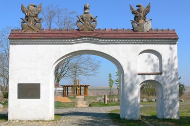 DER TORBOGEN GILT ALS BESONDERES WAHRZEICHEN DER GEMEINDE KLINGE.
